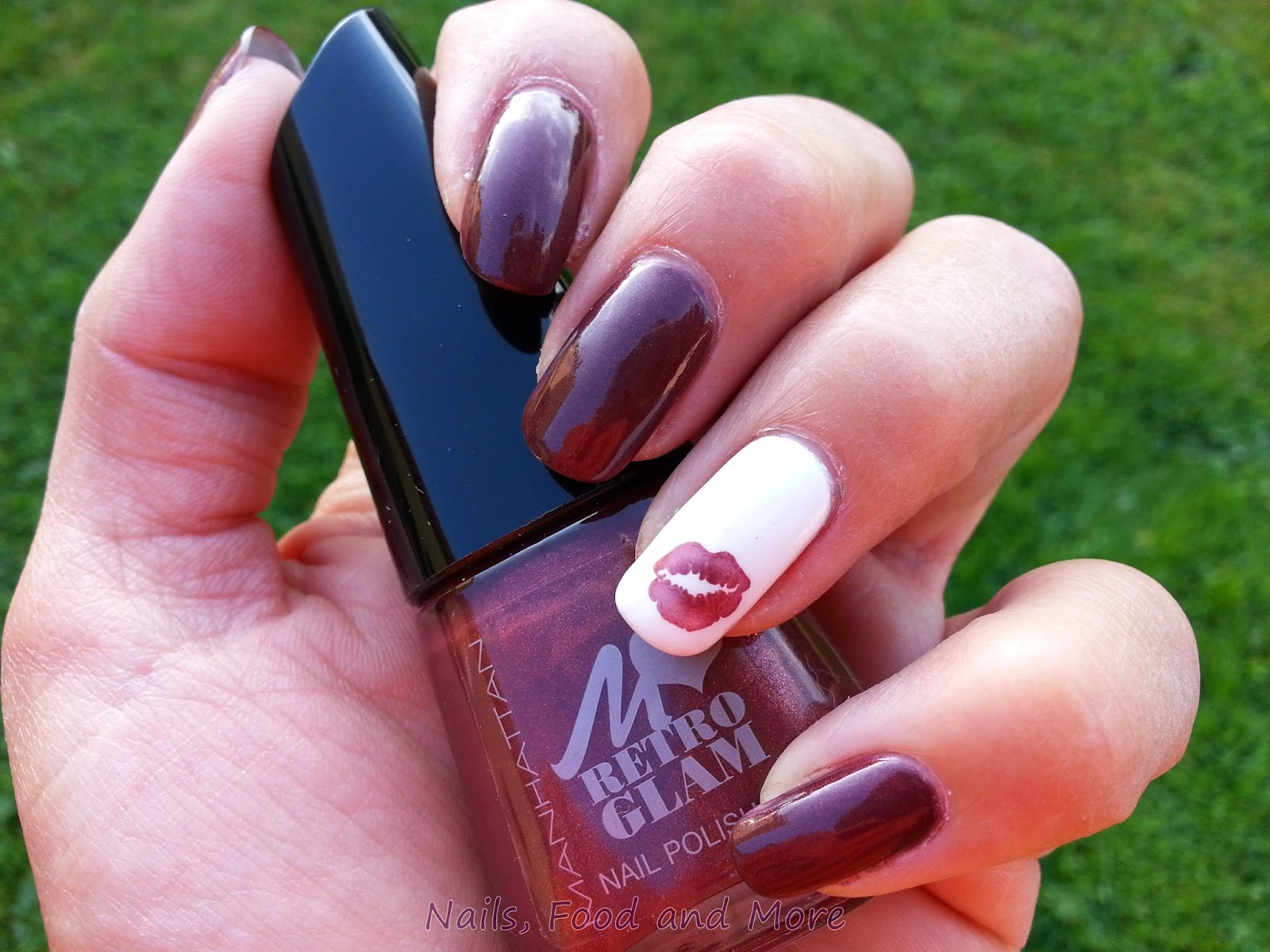 Auf dem Ringfinger habe ich weiß als Basis lackiert und darauf mit einer Platte von Cheeky und Black Cherry einen Kussmund gestampt.